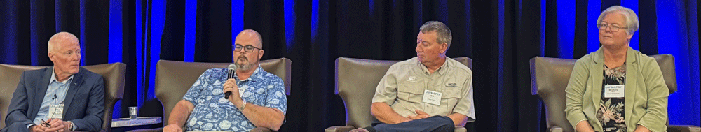 (L to R) Paul Bredwell, Alex Sullivan, Bill Knapke and Michelle Boney discuss ways to attract and develop environmental workers during a panel discussion at the 2025 USPOULTRY Environmental Management Seminar.