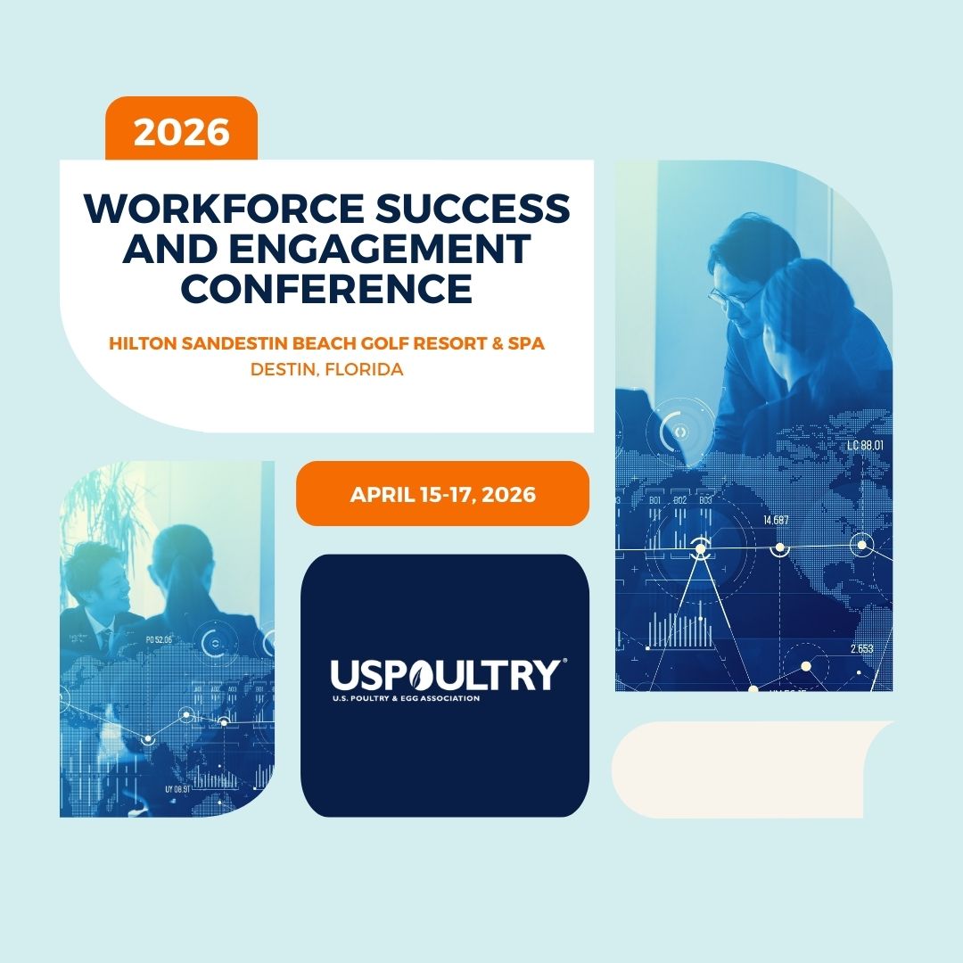 The 2026 U.S. Poultry & Egg Association (USPOULTRY) Workforce Success and Engagement Conference will bring together industry leaders, legal experts and workforce strategists for an immersive program designed to help employers navigate today’s evolving workplace landscape. Through interactive sessions, expert panels and real-world case studies, attendees will gain practical tools to strengthen compliance, enhance employee engagement and build resilient, future-ready organizations. The conference will be held April 15-17 at the Hilton Sandestin Beach Golf Resort & Spa in Destin, Fla.