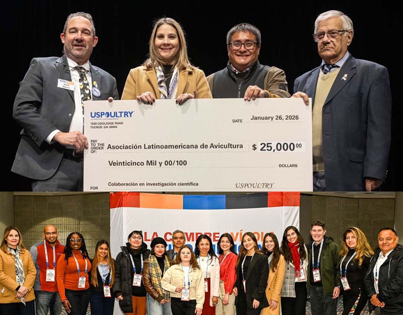 USPOULTRY also provides research funding through the Latin American research program. The research funds come from attendee and sponsor support of La Cumbre Avícola Latinoamericana, and a $25,000 check was presented to ALA during the program.